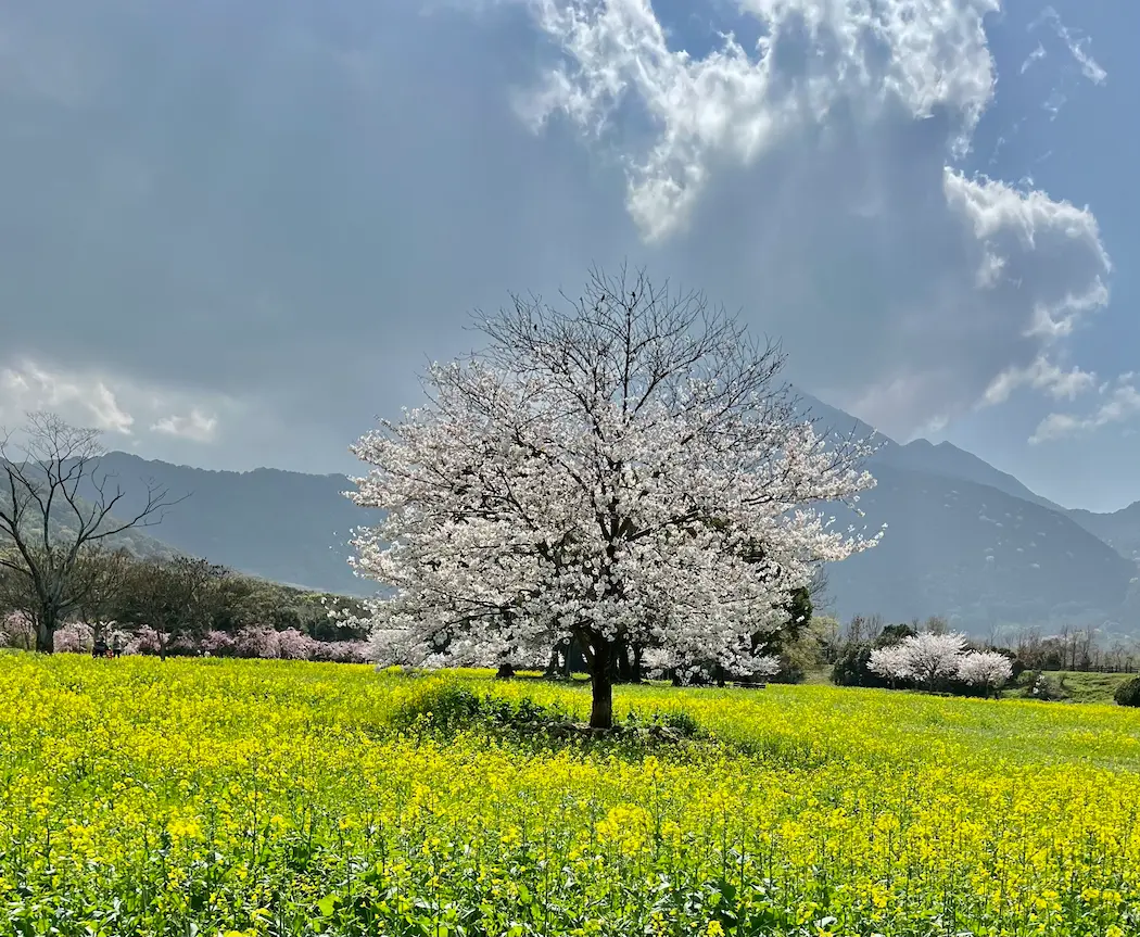 Wander through the beautifully landscaped Suizenji Jōzūen, a classic Japanese garden rich in seasonal beauty. Enjoy a local specialty lunch before hopping on a scenic ocean ferry ride. Spend the afternoon viewing cherry blossoms set against a sea of vibrant rapeseed flowers. Explore mysterious buried houses, then unwind with an optional onsen bath. End the day with a fresh seafood dinner featuring the local catch of the day.